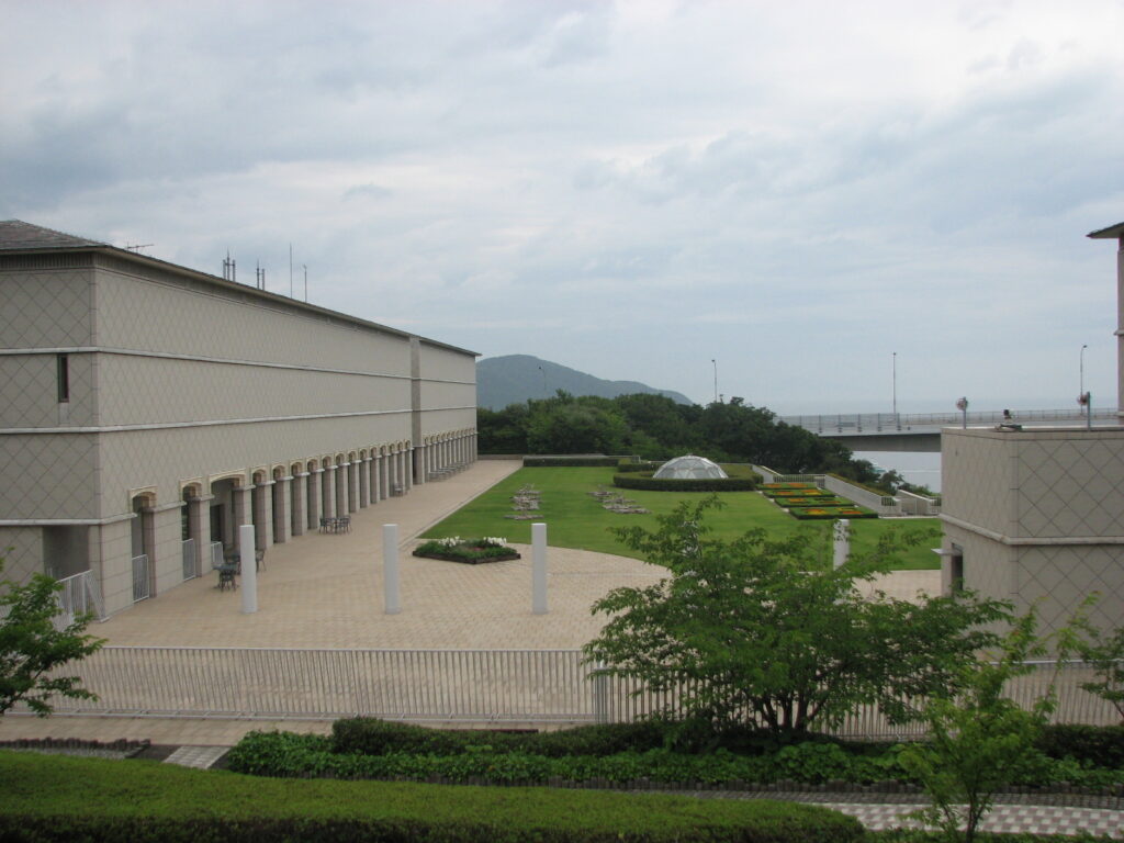 右上のカクカクした建物、平行のも垂直側に建ってるのもどちらも大塚国際美術館。