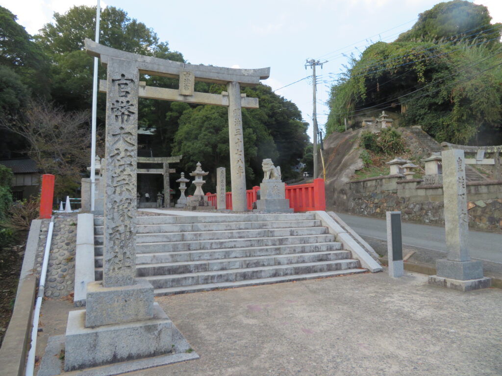 ……だがまあまあ歩くのに疲れている。港→弁財天神社→沖津宮遥拝所というコースは大雑把に行って4キロ強といったところだと思うのだが、アップダウンがあったんですよね。特に沖津宮遥拝所の手前辺り。歩き始めて、ちょうど通りかかったのーとる(コミュニティバス)を未練がましく振り返りつつ。このバス、スマホで登録しないと使えないらしい。わたしはなるべく登録をしない生き方をしたいので……それはもう仕方ない。