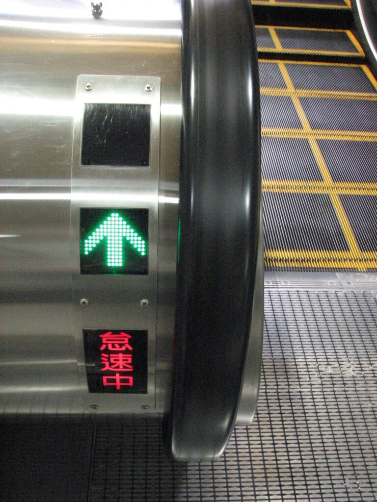 人がいない時のエスカレーター。日本では人がいない時には完全に止まっているものが多いけど、