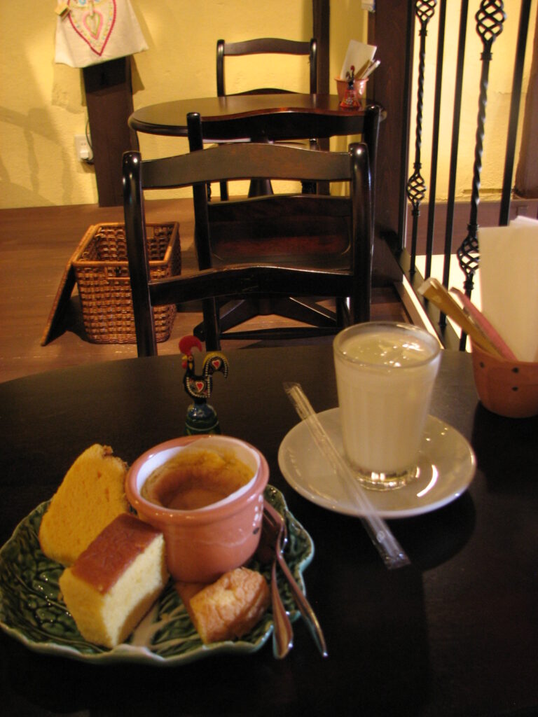 前にテレビで見て、カステラとポルトガルのパン・デ・ローの食べ比べ出来るセットがあるというので食べてみたかった。