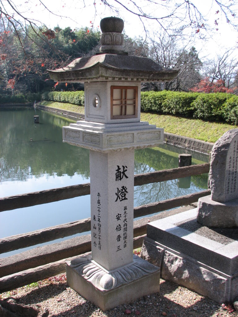 嗤ったのが、安倍晋三献灯の灯篭があったこと。