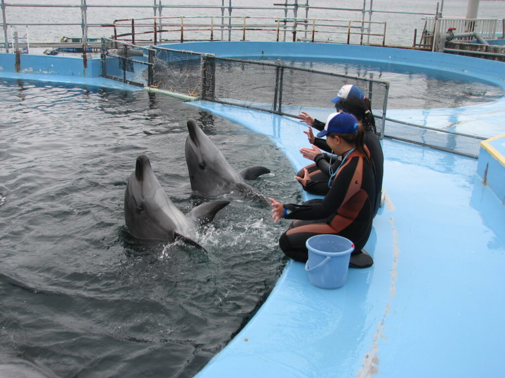 もっと天気がいい日なら、プールも見通しも良くて、もっとイルカがわかりやすかったかな。