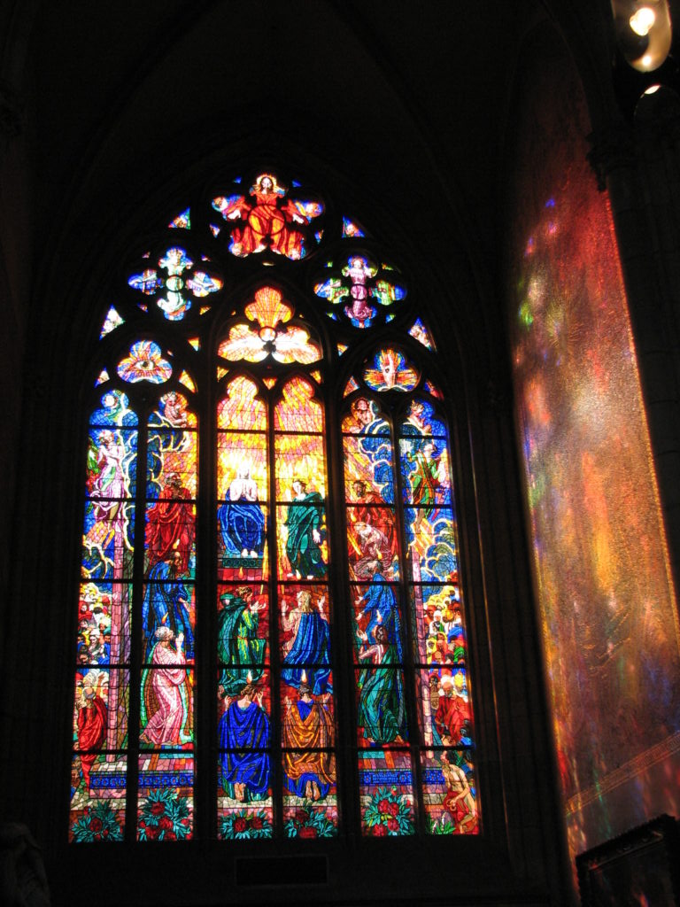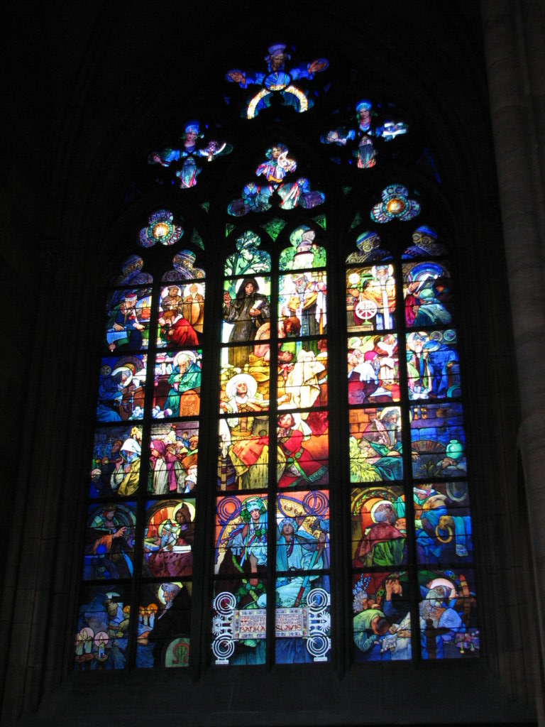 The stained glass by Mucha.