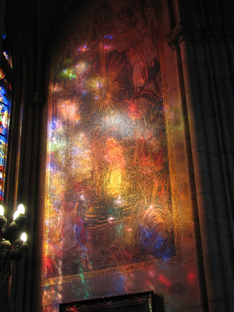 ステンドグラスの透過光が壁画に当たり、本当に美しい。