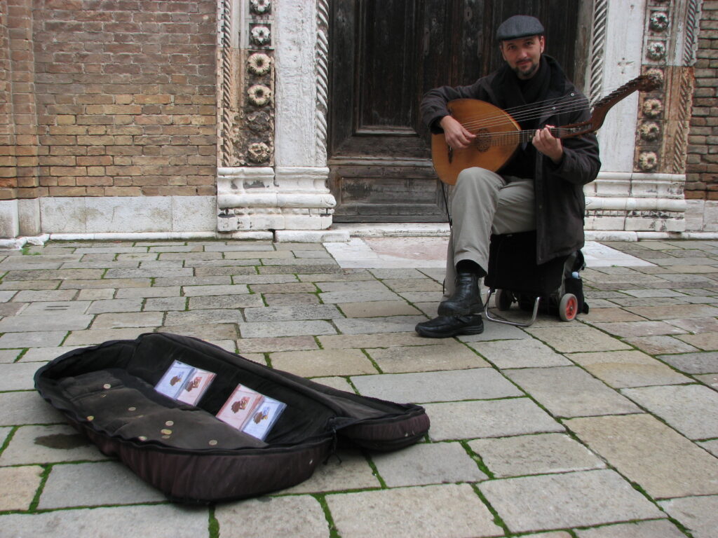 音の源は弦楽器を抱えたストリートミュージシャン。